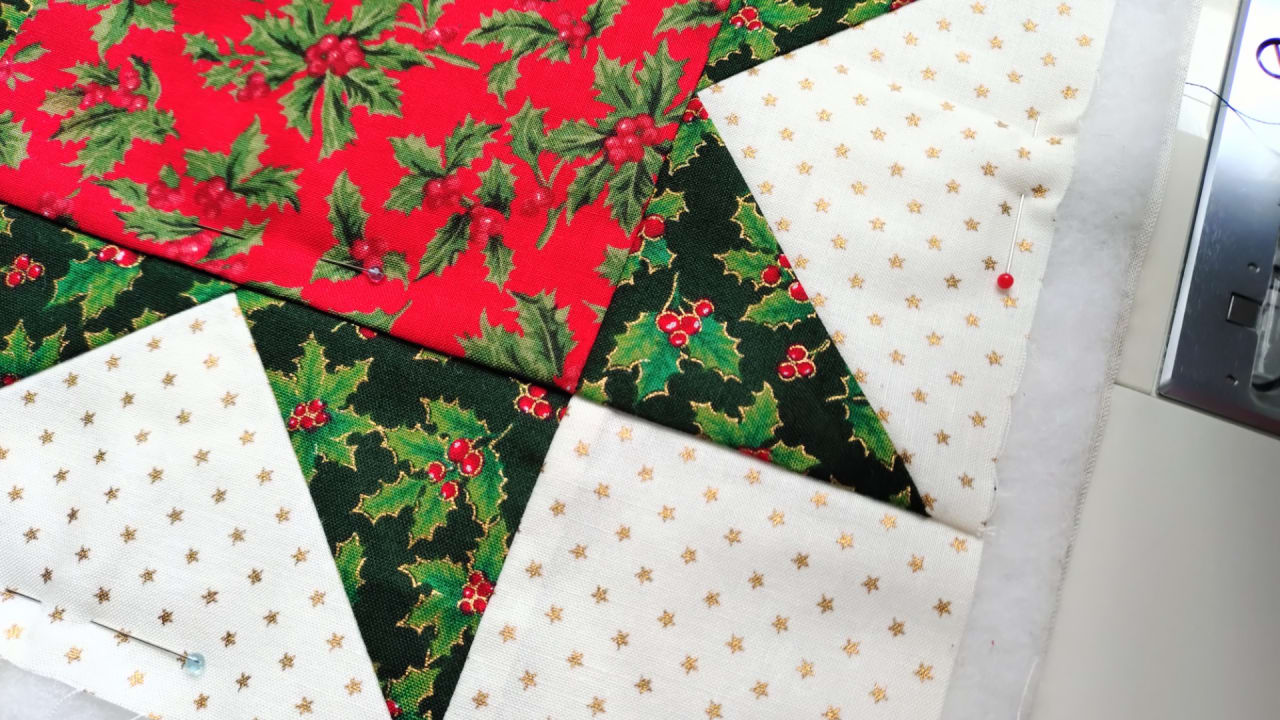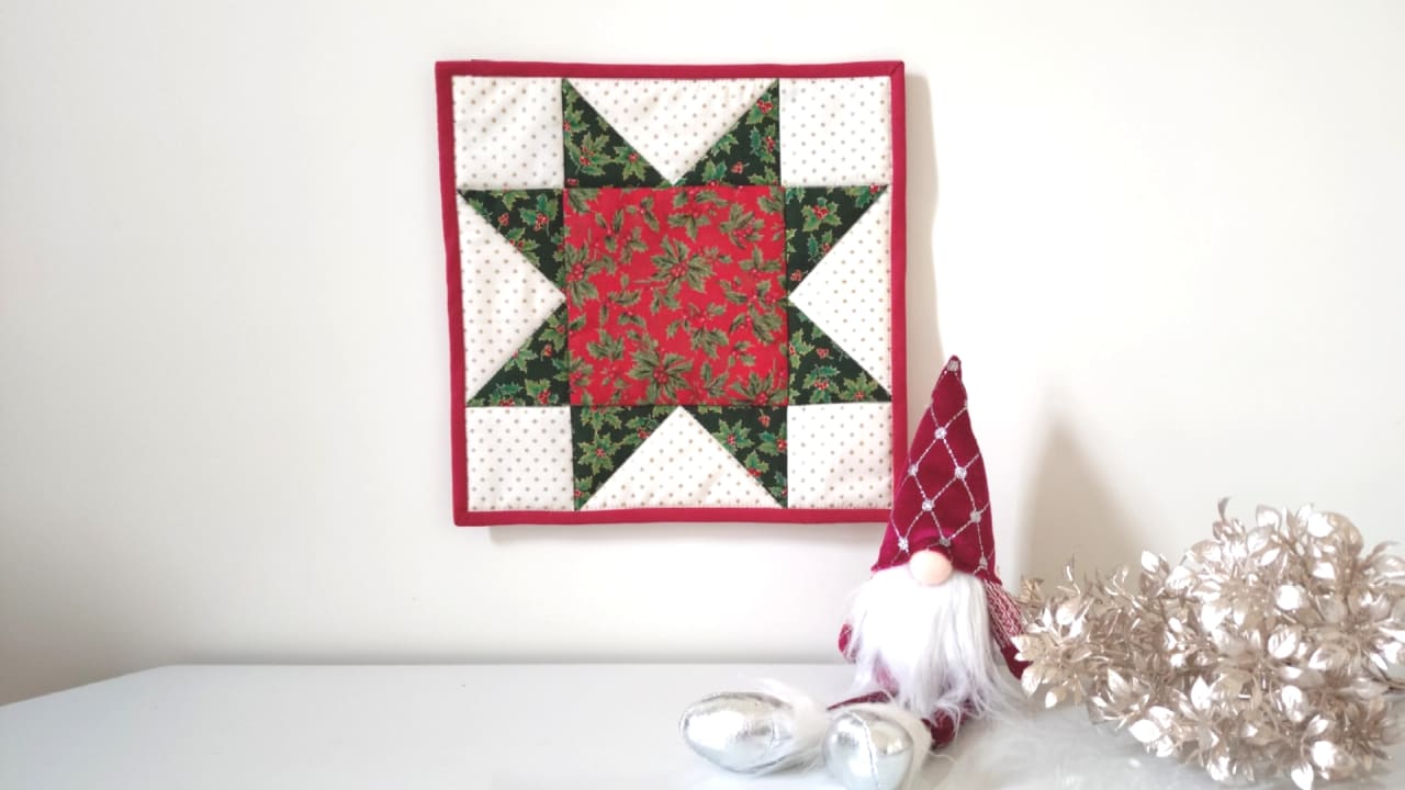 伝統的な模様の一つ「イブニングスター」のパターンを、ミシンを使ってミニタペストリ―に仕上げます。