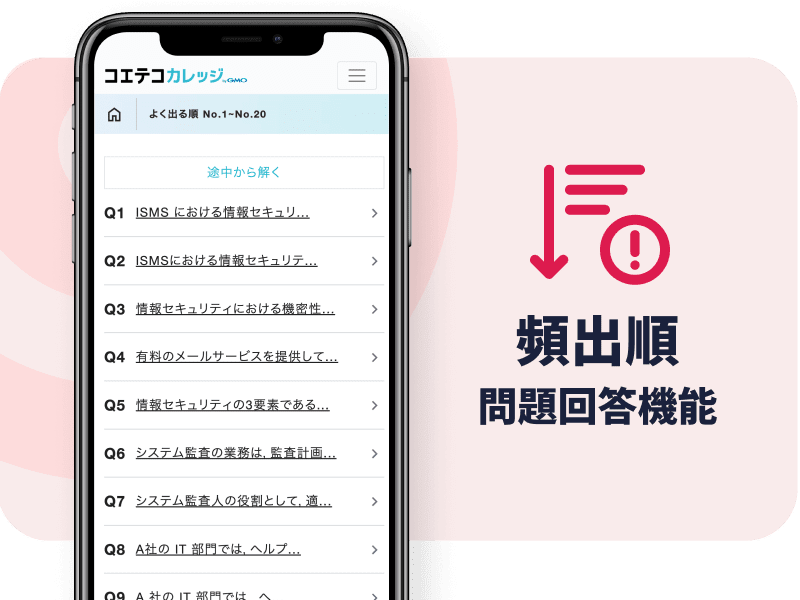 「よく出る順」で問題を解くことができ、効率的な学習と出題パターンの把握ができます。
