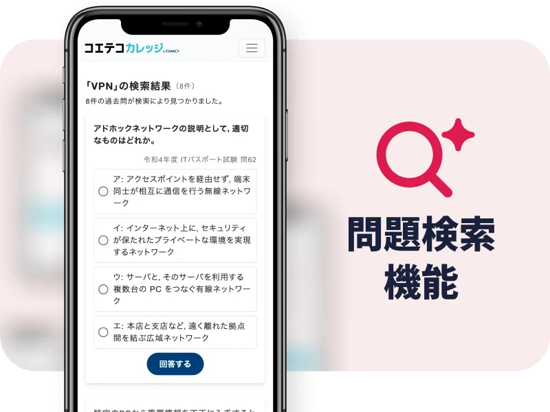 ランダムで全分野の過去問題を解くのはもちろんですが、各カテゴリ(ストラテジ、マネジメント、テクノロジ)の問題数が多いので、苦手なカテゴリを集中して取り組んでいけるところが強いです。 結果的には、コエテコの過去問題だけでITパスポートに合格することができました。 通勤時間に勉強することができる手軽さがとてもありがたかったです。