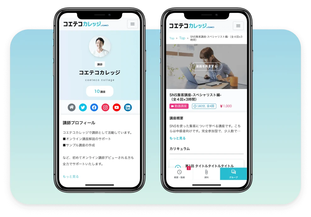 受講者は決済後、受講者メニューの講座画面の中に動画が表示され、ストリーミング再生できるようになります。パソコンでもスマートフォンでも視聴可能です。 -
