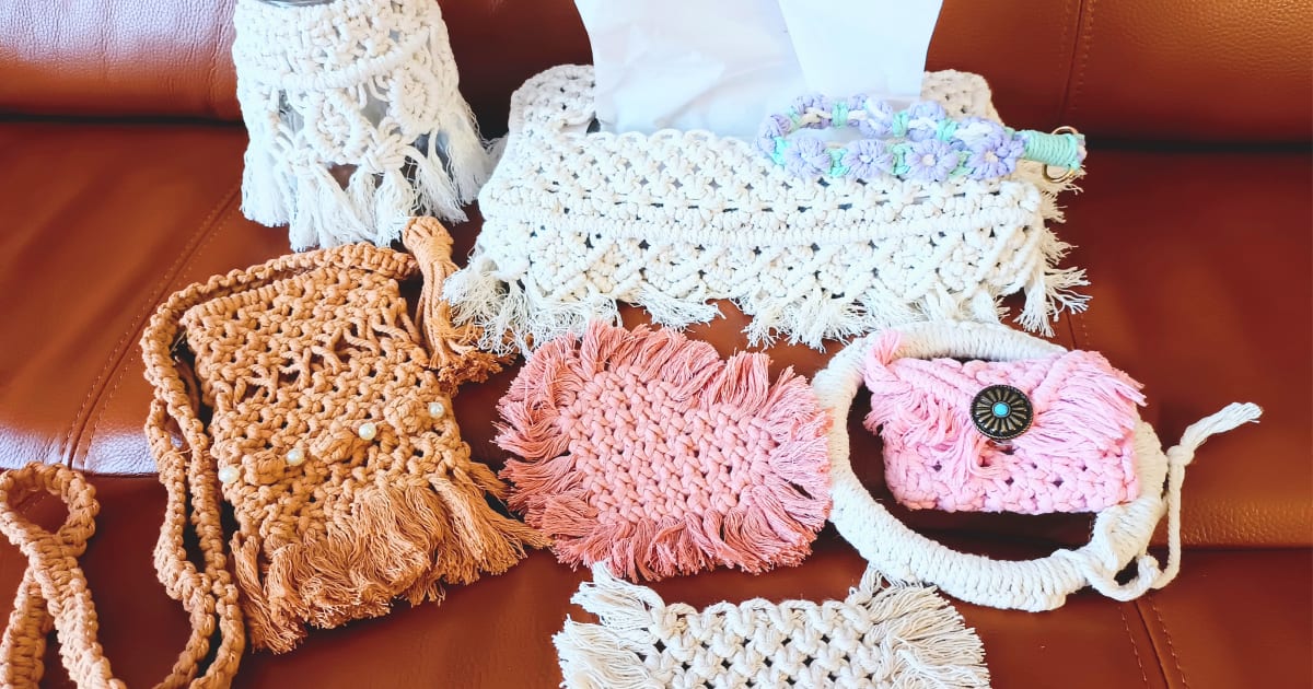 結ぶだけで作っていくマクラメ編み。簡単で、規則的な手作業で、指の体操にもなります。小物やバッグを作りませんか