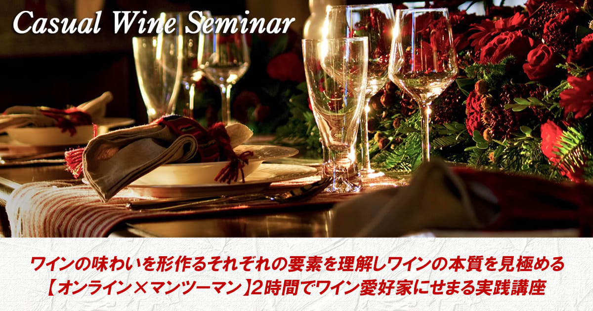 ワイン好きの皆さんの知りたいに応える現役ワインスクール講師によるオンライン講座。手軽に楽しくワインの基礎を覚えてワインが楽しくなります。 ※ZOOMを利用したテイスティングもあるオンラインでのワイン講座です。通常の対面講座とは異なりますのでご確認頂きますようお願い致します。 <自宅で手軽にワイン入門講座(赤白ハーフボトル付)とは> イマイチワインってわからないんだよね...長くワインを教えていると、多くの方からこういう声を聞きます。 横文字だから、値段が高そうだから、堅苦しそうだから等々、理由はいろいろあるでしょうが、実は食わず嫌いの方意外に多いんじゃないでしょうか? そんな思いをお持ちの皆様でも、自宅で手軽にワインの基礎をしっかりと覚えて、その日からワインが楽しくなる、ワインが飲みたくなる、そんなワインに興味をお持ちの皆様の知りたいに応えるお手軽な体験講座をご用意しました。とはいえ決してお気軽な内容ではなく、現役ワインスクール講師による、実践的かつ楽しみながらワインを学んで頂ける講座です。 <こんなことを学びます> 体験講座という事で、ワインについての基礎を知って頂くと同時に、その日から役立つワイン選びの豆知識を知って頂き、オンライン講座でも実際にワインをテイスティングして頂きます。 <こんなことが出来るようになります> 本講座の終了時には、ワインの味わいが何に由来しているのかを理解する事で、初めて目にするワインでもその味わいが想像できるようになります。 <こんな風に教えます> ZOOMミーティングの環境を利用し、オリジナルのテキストを使って少人数制のグループで丁寧に教えます。単なるワインの知識だけでは無く、世界的な市場の変化や最新のワイン情報まで盛り込んでの講座です。 また、オンライン講座ではありますがワインのテイスティングを行います。事前にハーフボトル(375ml)のワイン赤白各1本とテキストをお送りしますので、皆様と一緒にテイスティングをしながら、そのワインの味わいの理由を解説していきます。