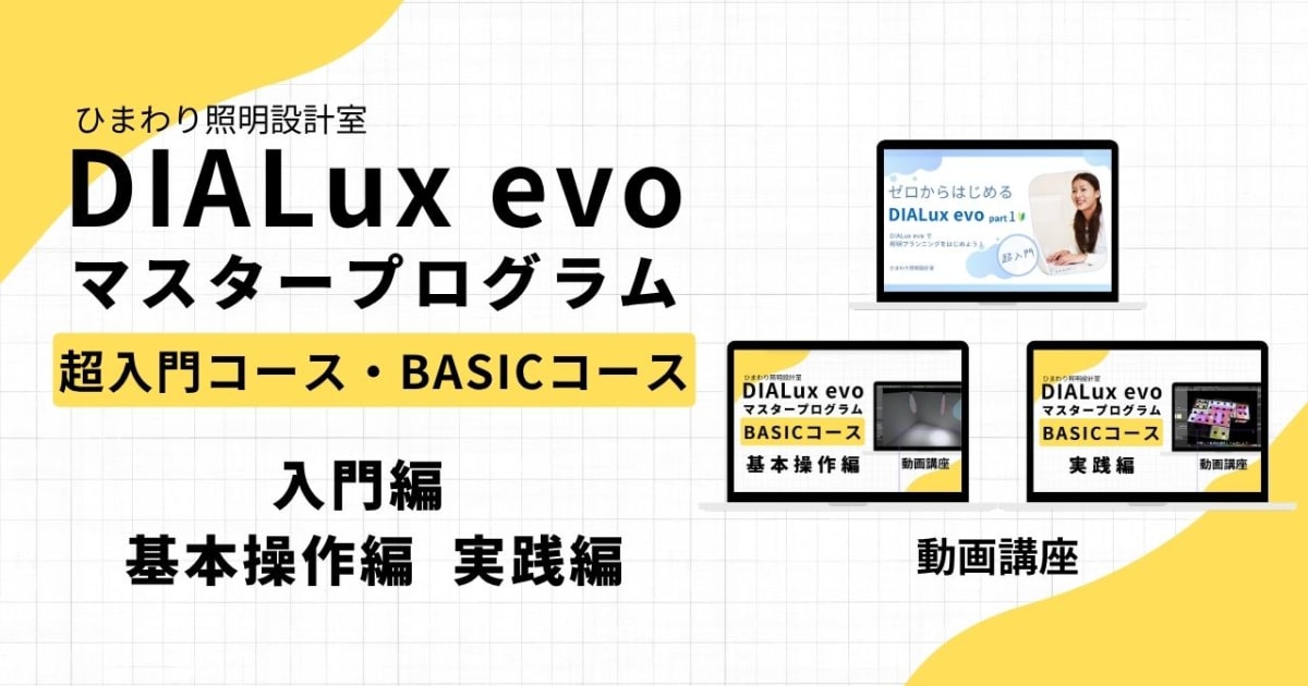 DIALux evoの基本操作から実務対応までを段階的に学べる講座シリーズです。超入門・基本・応用の3ステップ構成で、初心者でも無理なくスキルアップ可能な講座です。
