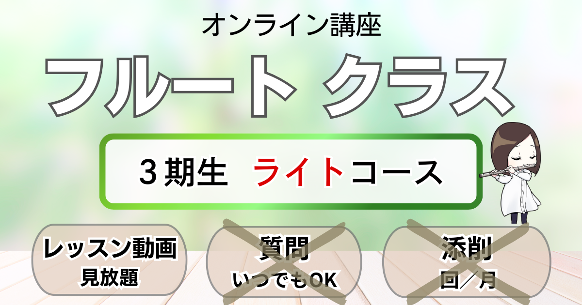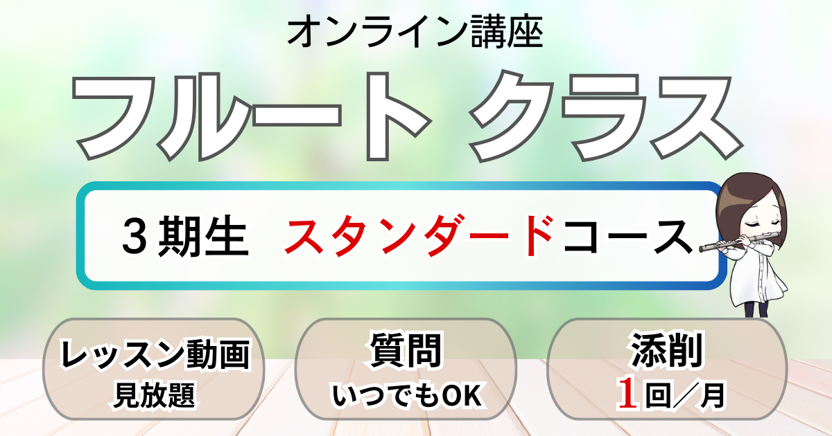 【コース内容】 ■ レッスン動画(見放題) ■ 質問(LINEでいつでもOK) ■ 添削(希望者のみ月1回) 【初心者さん】 「フルートを買う」ところから、 まず2曲演奏できるようサポート 【経験者さん】 伸び悩みの根本解決や、 自分史上最高の演奏ができる 具体的な練習方法などをサポート ・何から始めたらいいのか、わからない ・情報が多すぎて混乱する ・1つの練習が続かない ・自分の上達が止まった気がする ・何度も同じことでミスする ・自分が吹くと「なんか違う」曲ばかり ・1曲通して演奏できるものが少ない ・フルートをやってみたいけど自信がない ・気兼ねなく相談できる相手がほしい ・現在通っているレッスンで問題が解決しない ・基礎から見直したい ・忙しいから自分のペースで受講したい こんなお悩みを、 経験豊富なプロの講師と一緒に解決しましょう♪ ※レッスン動画は今後も増えていきます! (リクエストも受け付けています)