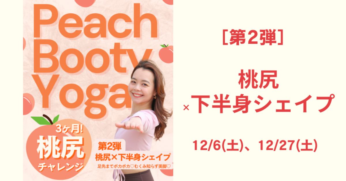 桃尻ヨガチャレンジ[第2弾 桃尻×下半身シェイプ]12/6(土)、12/27(土)