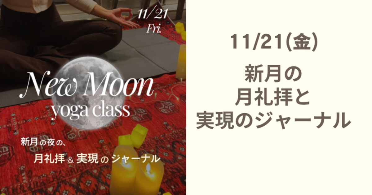 月の満ち欠けを表したフローである月礼拝と、理想に一歩近づく、実現のジャーナリングを行う2stepのクラス。 75分のスペシャルクラス。 ■開催日時 11月21日(金)19:30-20:45 ■レッスン内容 ①Journaling 実現のジャーナル 新月は”新たなスタート”を表しており、これまでのリセットや、目標設定に適していると考えられています。感覚が研ぎ澄まされるとされるこの時期、新たに取り入れたいことや、これからの行動を決定し、より良く過ごせるよう自分と向き合います。 ジャーナリングは講師のガイドとともに進めていくので、初めてでも安心です。 ②Yoga 月礼拝 月礼拝は、月の満ち欠けを表す8つのポーズで構成されます。 股関節の柔軟性向上、骨盤周りの冷えやむくみの解消に効果的です。 新月は”再生”に適している時期。疲労や老廃物、マインドのざわめきはヨガによってリセットし、穏やかな夜を過ごします。 ■スケジュール ※会場は19:20ドアオープン。 19:25 までに集合 19:30クラス開始 20:45クラス終了 ■集合場所 Studio Aivic JR渋谷駅 宮益坂口から徒歩5分ほど ■料金 通常 ¥3,300 早割 ¥2,800 (7日前までのお申し込み) ※サブスク、チケットの方は+¥400で参加可能 早割り予約はこちらから↓↓ https://college.coeteco.jp/date_groups/pdWXHRXe ■セット特典! 11/4(金)満月クラスも合わせて参加の方、¥1,600割引! 2クラス合わせて¥5,000! (まずは、こちらの新月クラスをお申込みいただき、“満月クラスも参加”とメッセージお寄せください♪) ■定員 6名 (※定員に達し次第終了。) ■持ち物 ・ヨガができる服 ・飲み物 ・ヨガマット ※レンタルヨガマット有¥300 ■キャンセルポリシー 前日〜100% ※無断欠席はご遠慮いただき、必ず事前のご連絡をお願いいたします。