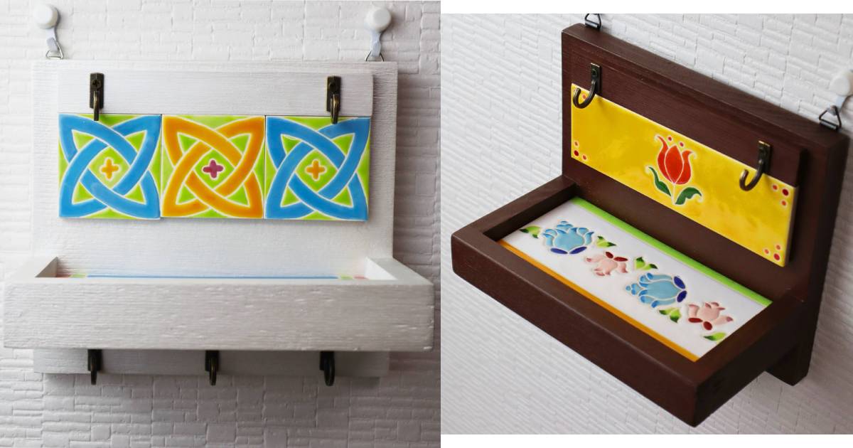 手作りタイルアートを取り付けたアクセサリートレイ付きのキーフックを作ってみませんか? 10歳以上(目安)のお子様同伴、あるいは大人お1人様で参加頂けます。 <内容> 48mm角タイル 3枚 74x148mm 1枚 <習えること> ・スポイトや筆の使い方 ・色付けのコツとその修正方法 個人個人の能力に合わせて丁寧に指導しますので安心していらしてください。